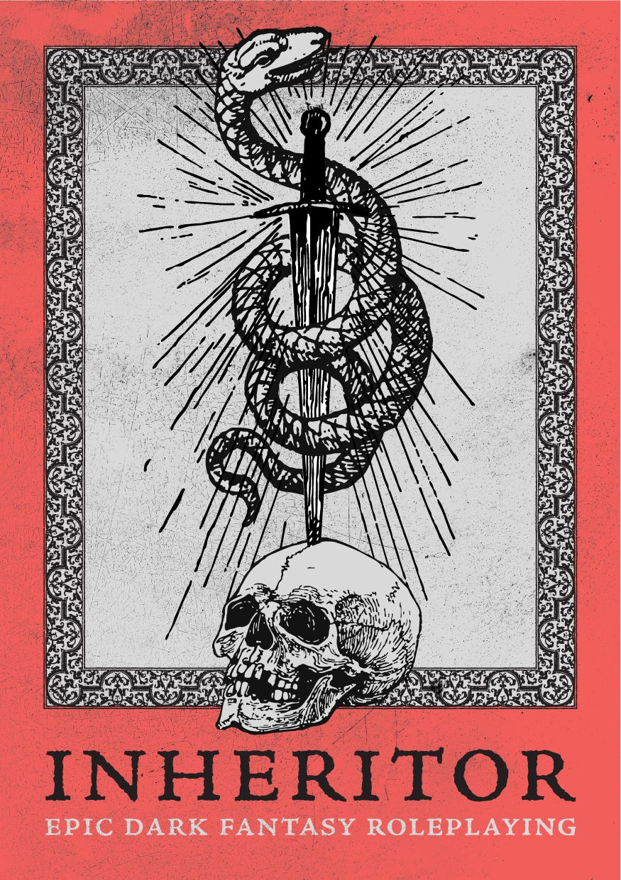 Inheritor is a dark fantasy roleplaying game set in a dying world where characters seek to enact their will upon it and, potentially, escape the consequences of it.